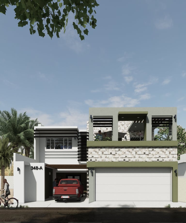 Este proyecto es una residencia que se esta ofertando para venta en la colonia Benito Juárez; cuenta con 4 recámaras, 3 1/2 baños, cochera techada para 2 carros, cochera abierta para 1 carro, sala, comedor, cocina, cuarto de lavado, gimnasio, terraza en 2do nivel con asador y alberca con asador.